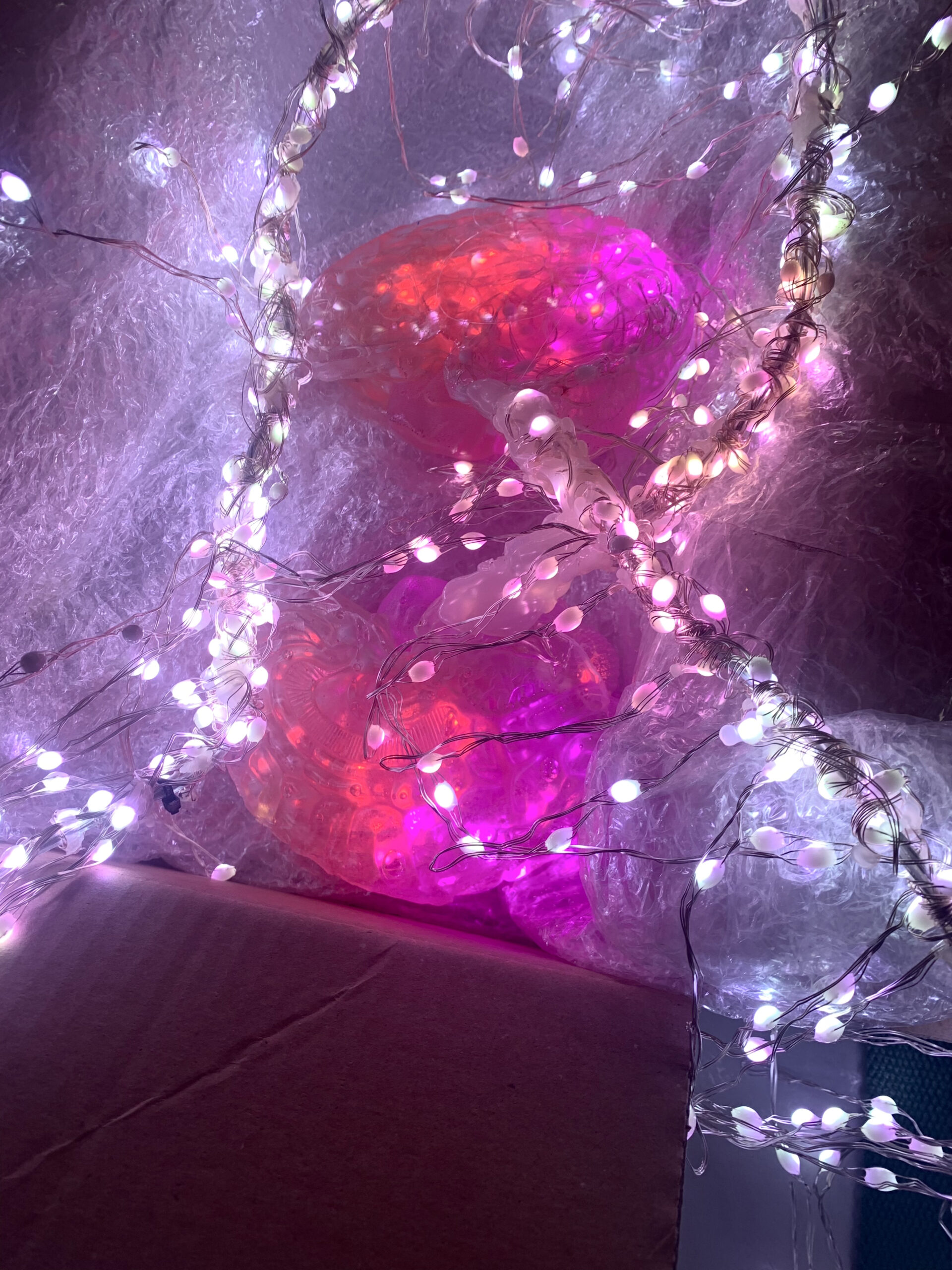 As no 3D active and transparent models of the brain delineate the experience of seeing in real time what our brains are doing inside our heads, I set out to make one. The first part of this project demarks the creation of an LED-controlled resin and silicone sculpture, shown here. In the near future, this sculpture will be connected to an EEG headset that will enable visualizing experienced and live thoughts inside our brain in real-time on a 3D life-size transparent model of a brain.